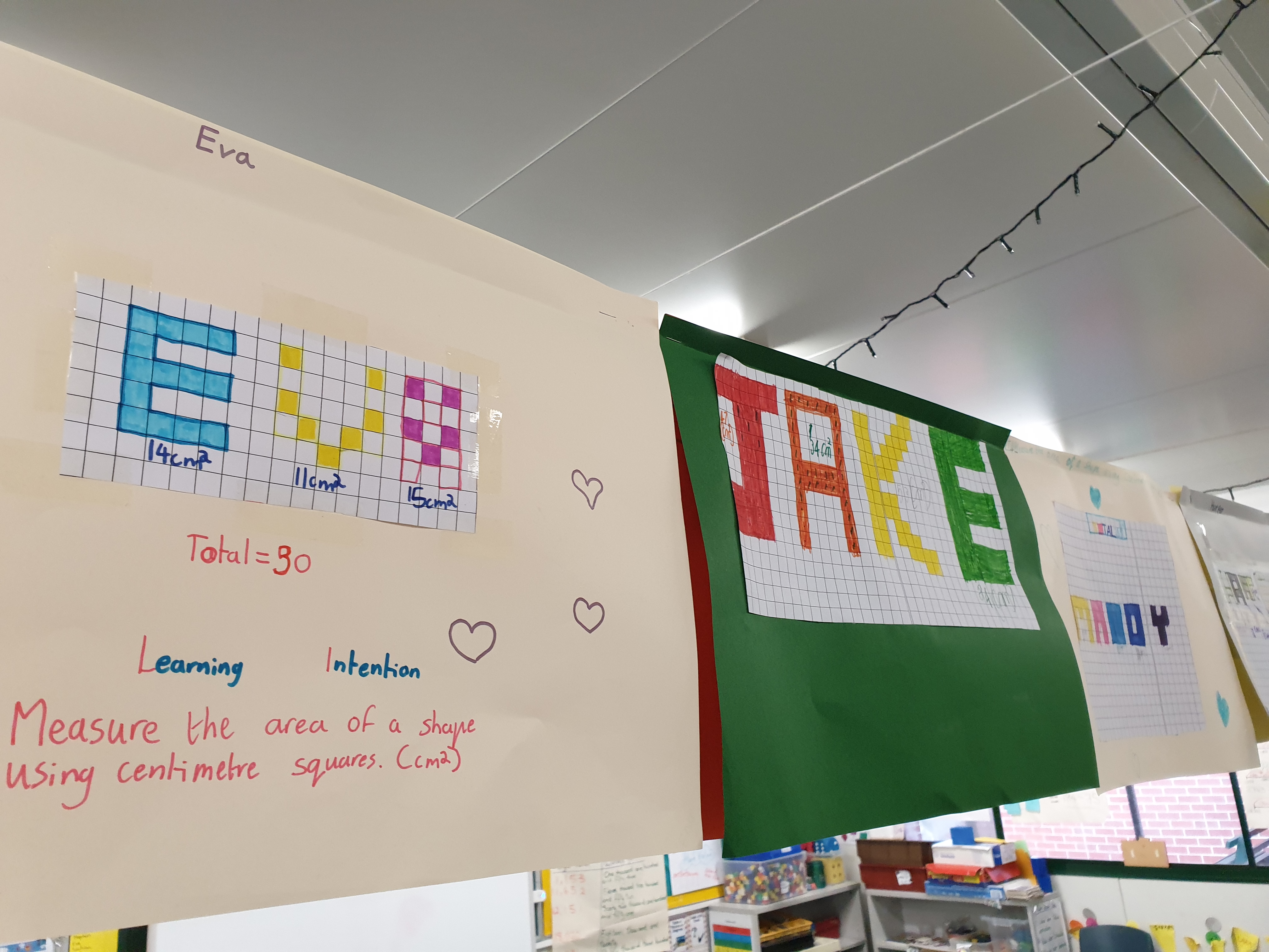 This term, The Grade 3 classes have been further learning about the concept of measurement and measuring the area of a shape. Students have been using familiar metric units and grid paper to calculate the area of shapes.