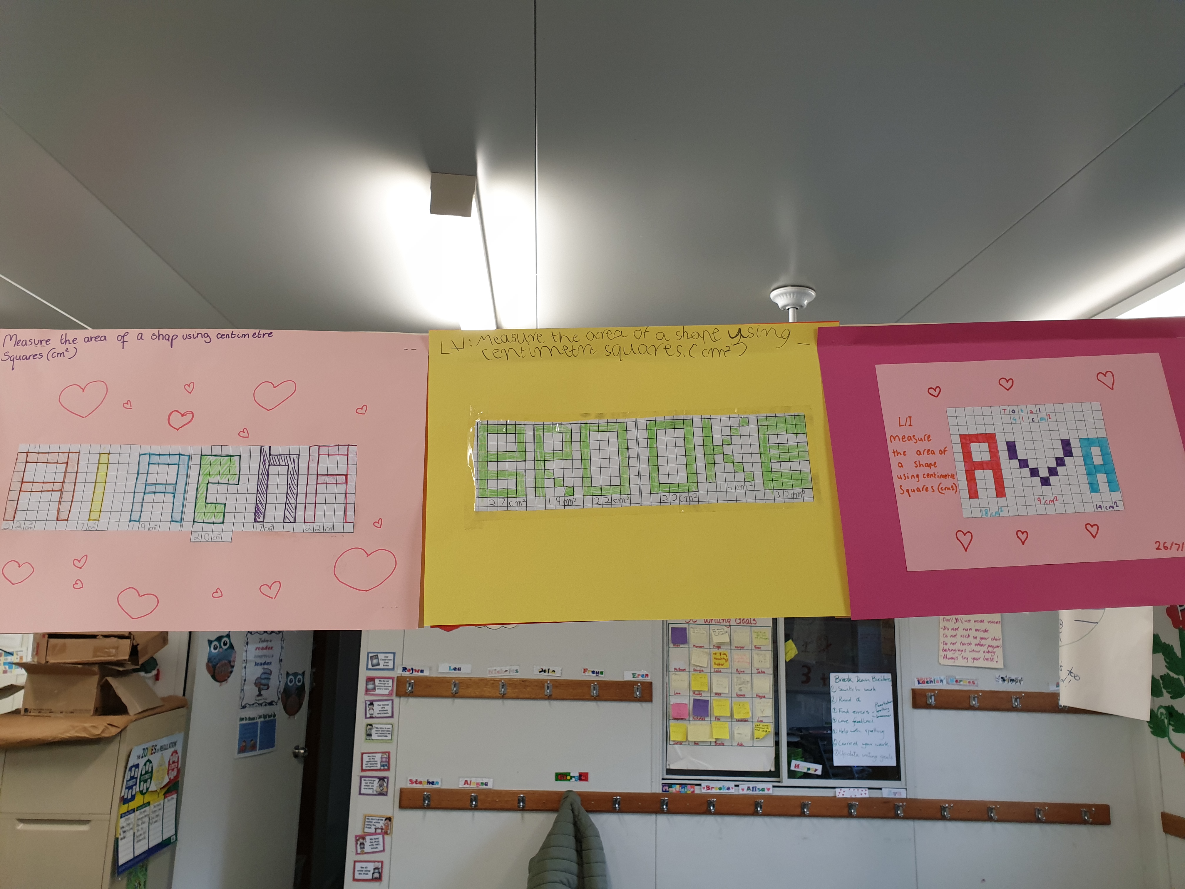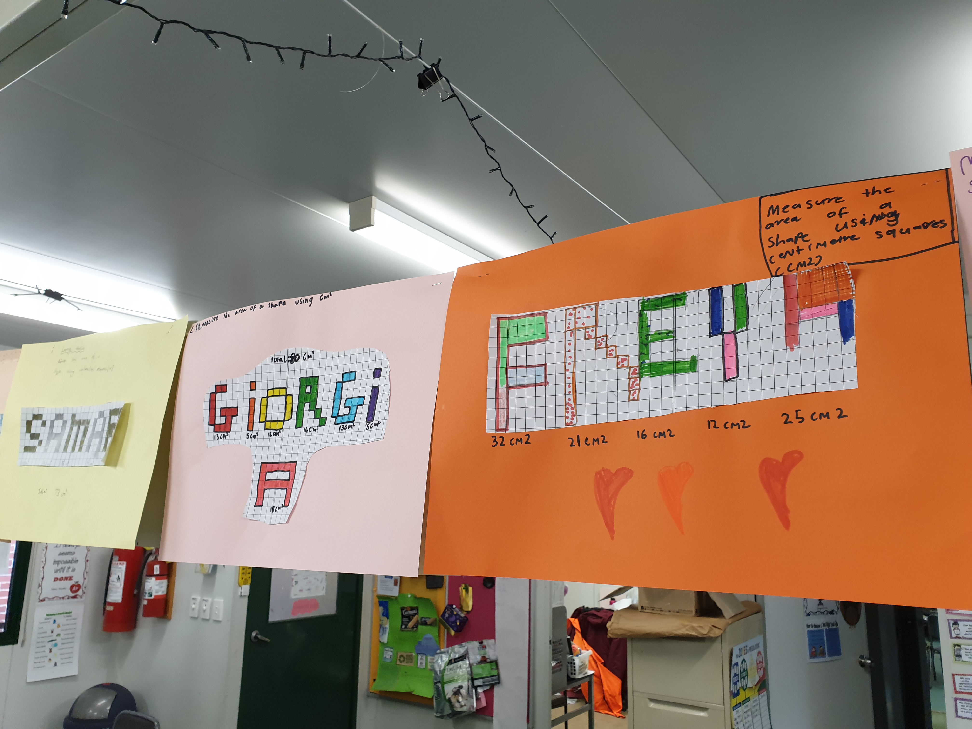 One of the fun activities students completed was creating their names using the grid paper and calculating the area of each letter and the total area their name covered.